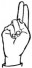 На ћирилици написано ДРАГИЈА ПЕШТЕРАЦ састоји се из 15 слова [?]. Исписано ћириличном једноручном азбуком за глувонеме: